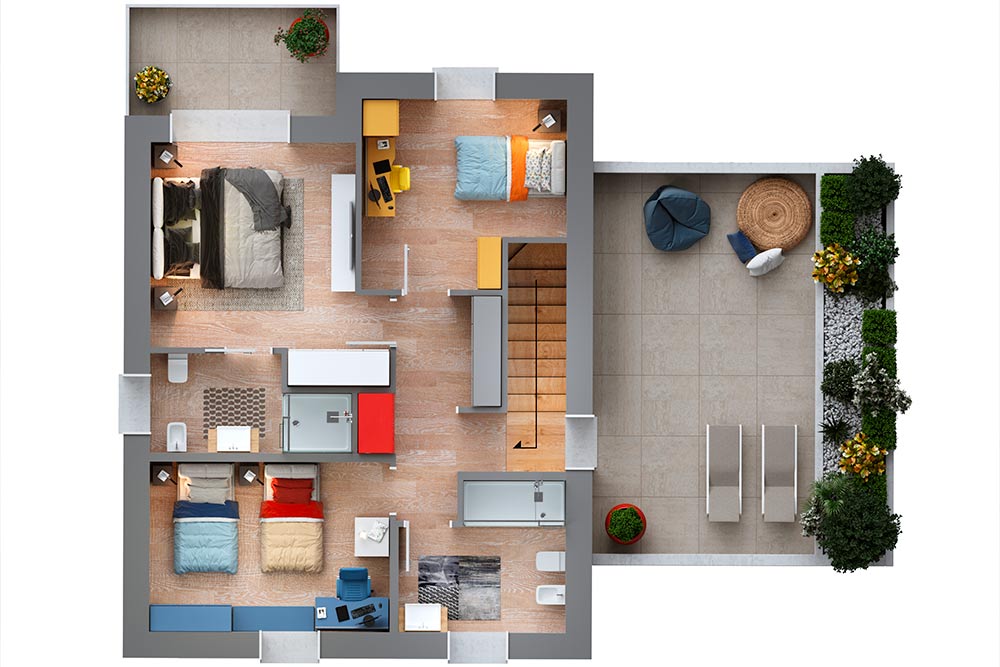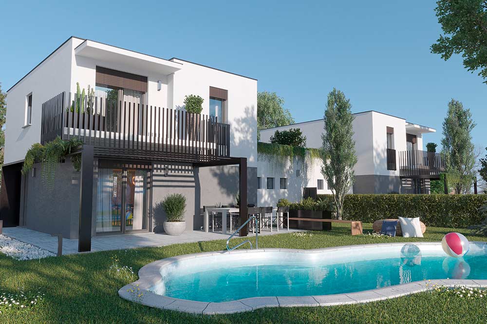 Le abitazioni di classe A4, realizzate in una zona strategica e residenziale in Via Stazione Rossano Veneto (VI), sono composte da 3 camere, 3 bagni, ampio open space, terrazze, garage coperto e giardino.